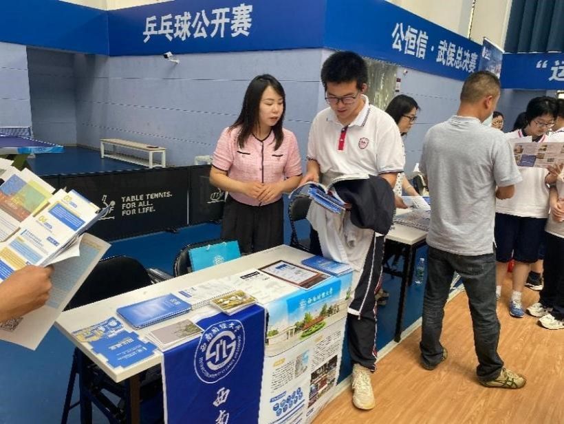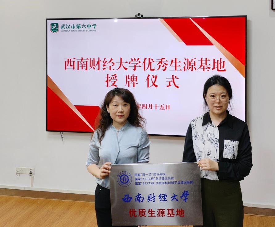 娄雅琪赴武汉市开展招生宣传活动,授予武汉六中优质生源基地荣誉称号。招生组积极拜访已授牌的优质生源基地中学如洪山高级中学、武汉二中、武汉外国语、武汉十一中、武汉六中、华师一附中等,同这些中学的教导主任、招生主任积极交流沟通,提供精准答疑和招生服务,提供了4场专家讲座,3场线下咨询会。4月18日,学院招生组李泽宇,卢琦参加成都市师大一中(龙泉),北京第二外国语学院成都附属中学的线下招生咨询活动,在现场与同学积极互动,介绍答疑西财招生详情。