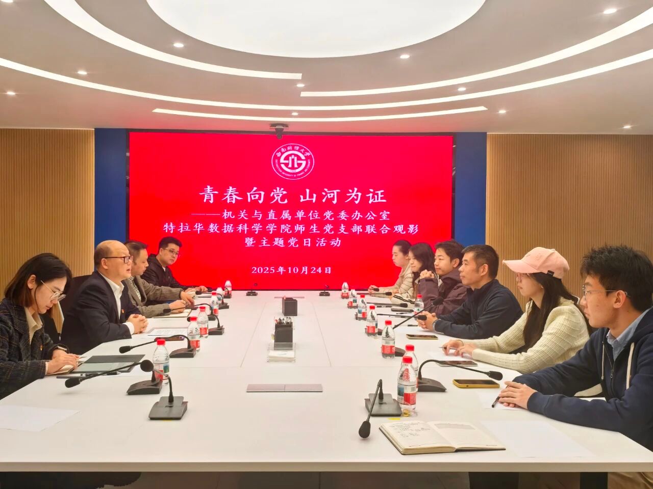 观影结束后,学院党总支和机关与直属单位党委开展了“青春向党 山河为证”学习研讨会。何刚带学了党的二十届四中全会公报。与会师生结合红色影片的深刻启示,围绕党的二十届四中全会精神和自己的学习与工作开展研讨交流。大家纷纷表示,必将从红色精神中汲取养分,坚定理想信念,始终不忘初心、牢记使命,将个人理想融入党和国家事业发展规划之中,在新时代新征程上砥砺前行,争做堪当强国建设、民族复兴大任的时代新人。