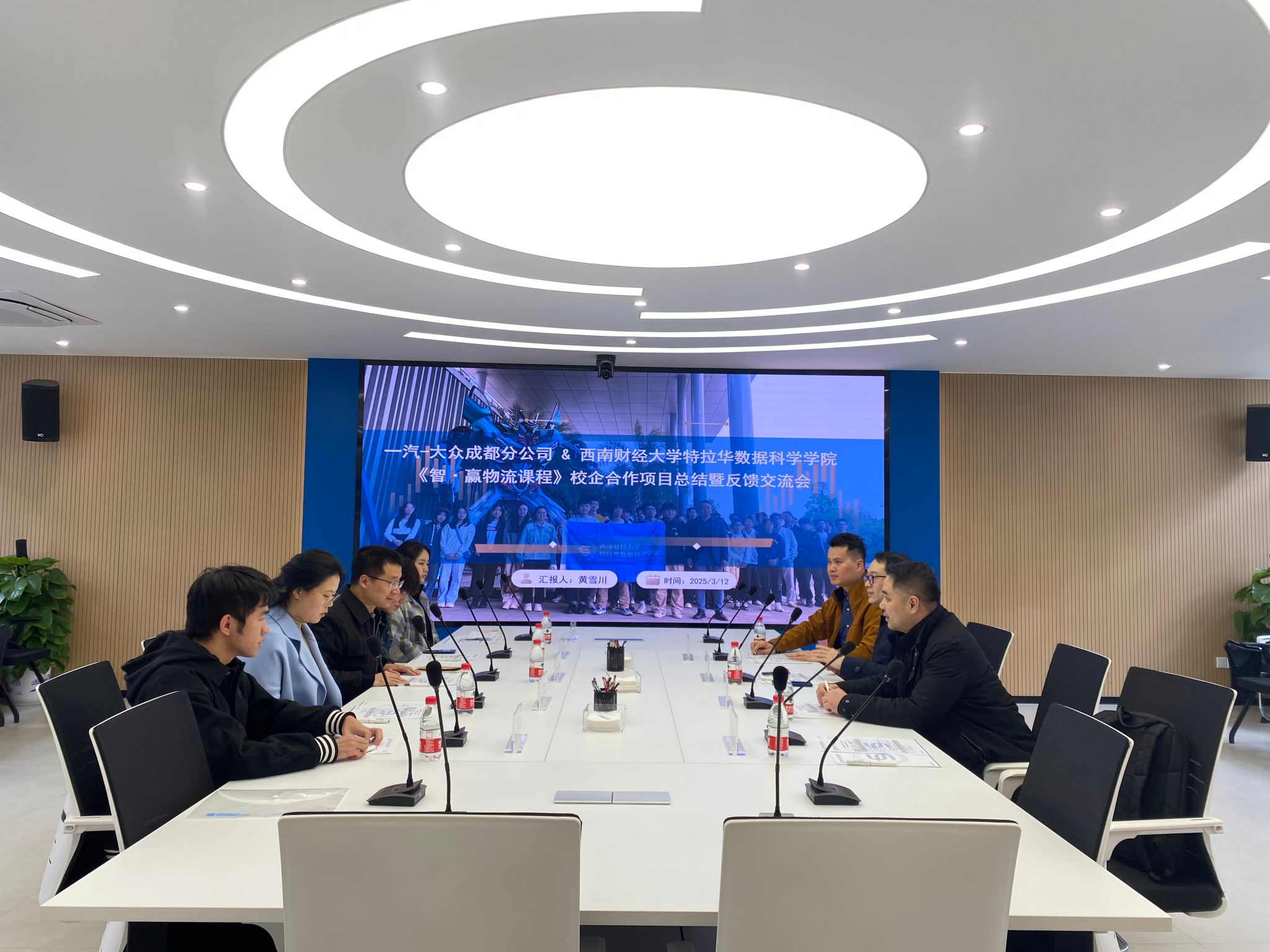 与一汽大众成都分公司联合开展的课程《商业分析中的项目实践》总结交流会在学院视频会议室顺利举行。一汽大众成都分公司一汽大众成都分公司生产管理部生产控制与物料筹措科物料规划工程师专家黄雪川,总务人事部人力资源科主管李锐,生产管理部生产控制与物料筹措科物料规划工程师唐文杨,总装车间校企合作负责人江济炜到访学院,与院长杨石磊,招生与公共关系主任娄雅琪及姚宣宇、丛子涵、董萧尹等学生代表展开深度交流,共同探讨课程效果,探讨校企协同育人新路径。
