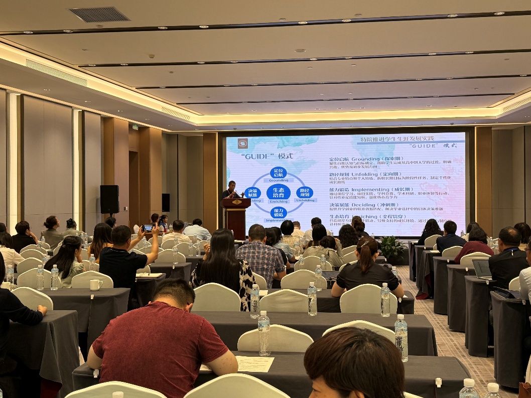 的办学特点与目标任务,并从“GUIDE”模式的五个方面展示了学院在系统推进学生升学路径的精细化构建与发展的创新成果与实践经验,受到听会代表的高度评价。