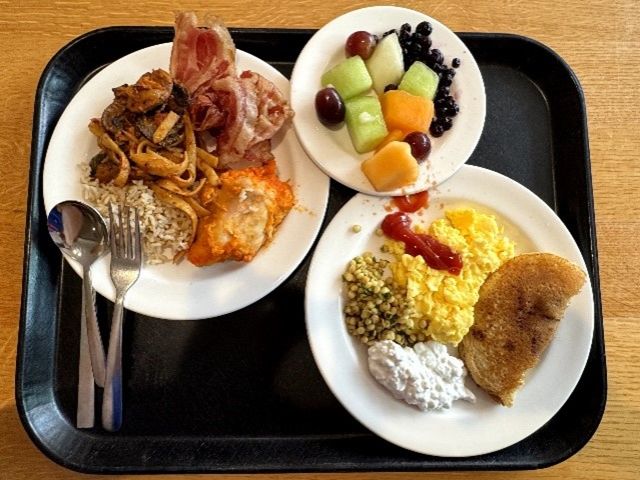 平时,我们住在Cabot House, 离上课的地方大约20分钟步行距离。宿舍是四人间的套房,独立寝室,共用卫浴,有一个小客厅,洗衣房和厨房在地下室。但是寝室没有空调,这是最令人难以接受的。食堂在不远处的Currier House楼下,每天有3顿自助餐和1次夜宵,食物还算丰富,但是是典型的白人饭,有水吧可以畅饮各色冷饮。我们住在许多不同的宿舍楼,每个楼有自己的徽章,象征每个楼不同的风格特色,楼下的公共空间也有着不同的设施。我最喜欢去Currier house玩,那里有台球桌、游戏机、投影仪和棋牌室,也是在那里,我认识了许多来自世界各地的好朋友。学校有专门的免费巴士串联散落在城市里的各个哈佛站点,地铁交通也十分发达,出行还算方便。