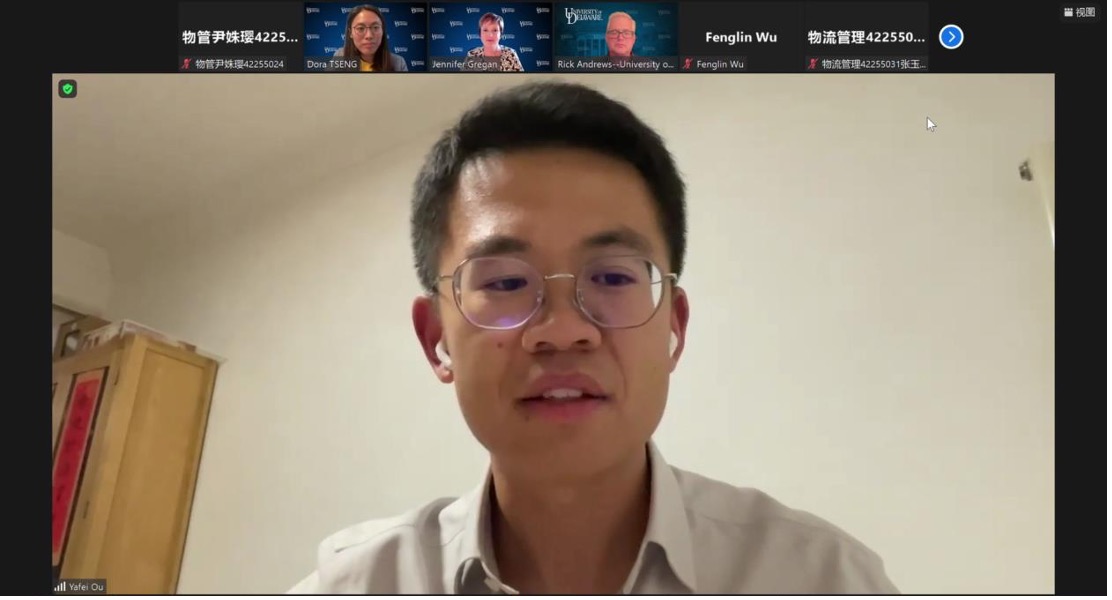 On May 22nd, Peiyu Wang, who holds a dual Bachelor's degree in Management Information Systems from SWUFE and UD, and a Master's degree in Data Analytics from George Washington University, and is currently a Java Engineer at VMware, shared her personal experience. Peiyu elaborated on her experience at UD and her career development path. She also provided suggestions for students' study abroad plans based on her personal experience and introduced solutions to problems that may arise during the study abroad experience.
