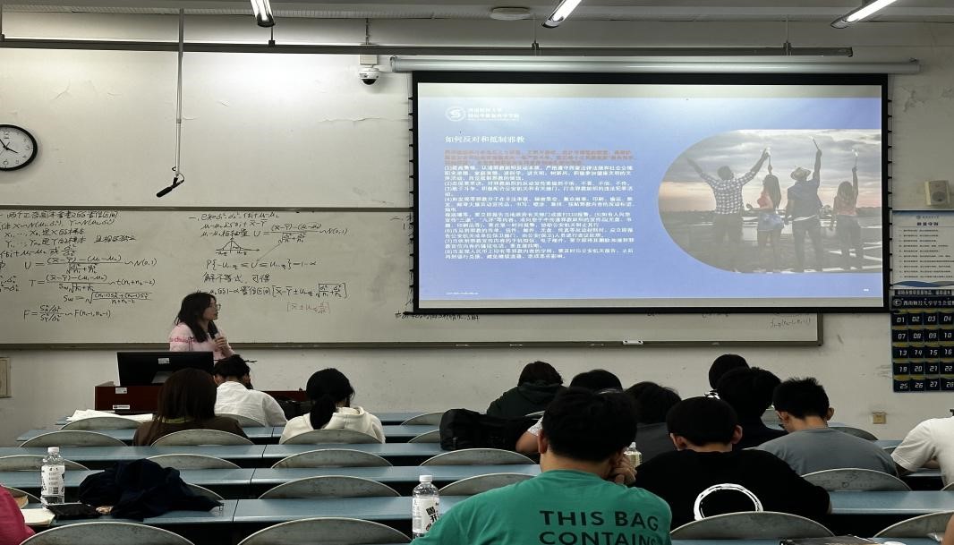 宣传活动期间,由辅导员向同学详细介绍电信网络诈骗的特点和作案手法及防范措施,给同学们普及了金融诚信知识,通过现实案例,为同学们展示了不良校园贷的危害和防范措施。提醒同学们认清金融诈骗、非法借贷等的危害,防范不良校园贷,保护自我。