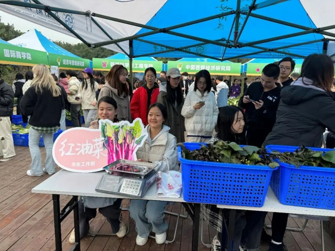 劳动实践队的同学们参加了学校举办的“SWUFE劳动集市”,整个集市上摆满了新鲜的蔬菜,琳琅满目。“数据伊甸园”的红油菜吸引了很多顾客,探花视频