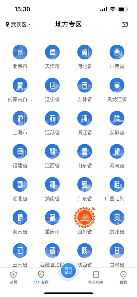 3、点击探花视频,找到“地方专区”对应到各自的参保地;