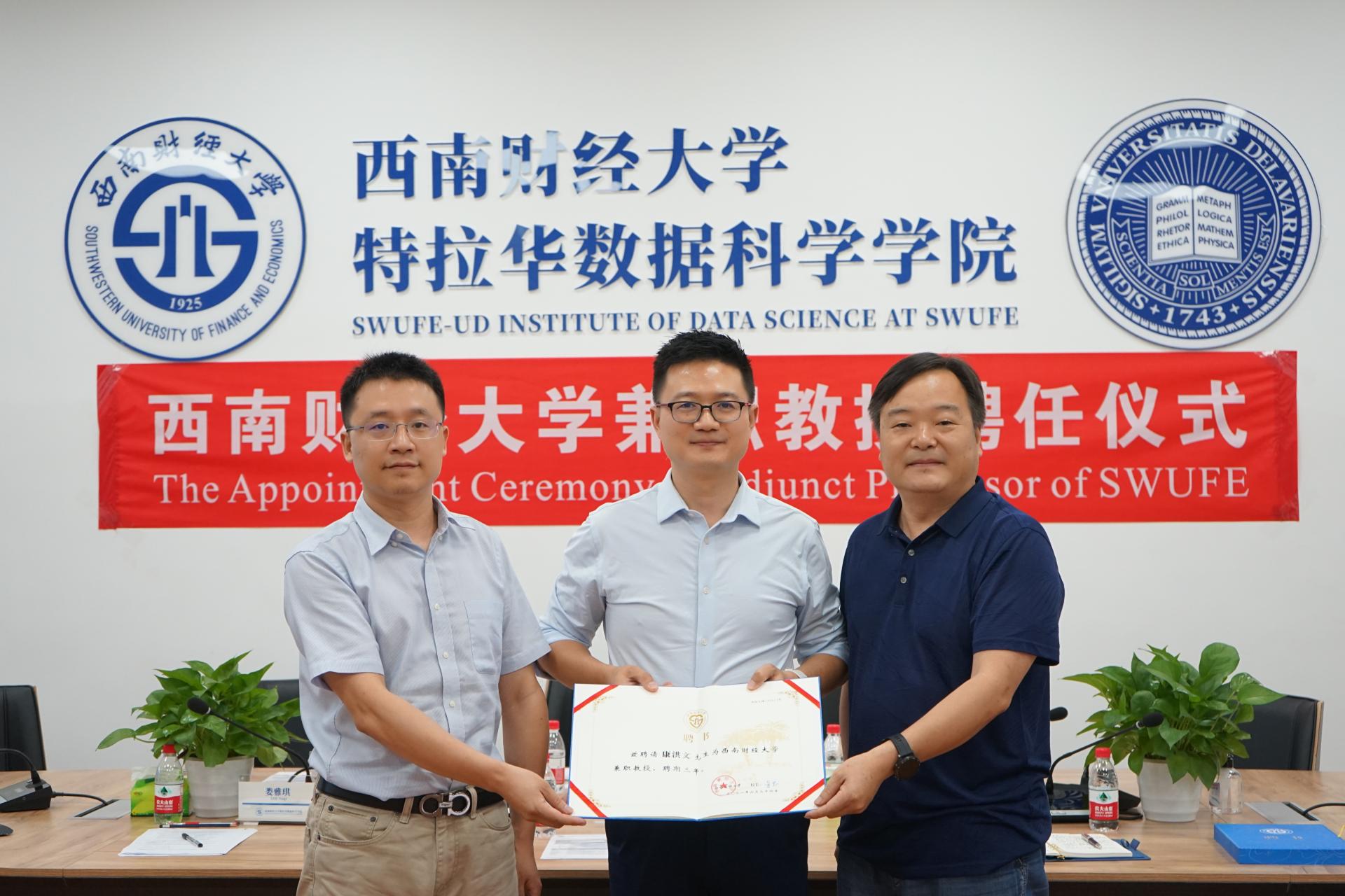 兼职教授聘书。杨院长祝贺康洪文教授加入探花视频