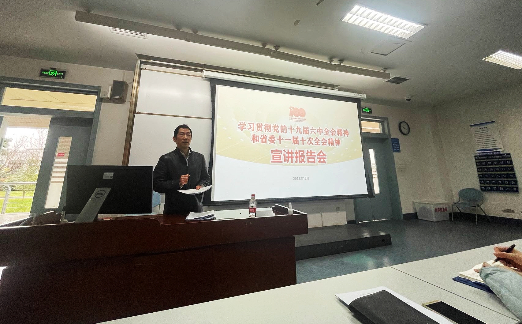 于12月16日下午在经世楼F102开展了党的十九届六中全会精神和省委十一届十次全会精神宣讲会。此次宣讲会邀请了学校党的十九届六中全会精神宣讲团成员、党委办公室主任、马克思主义学院教授陈宗权做党的十九届六中全会精神和省委十一届十次全会精神解读。宣讲会由学院院长杨石磊主持,学院党员教师、2021级和2020级学生党章学习小组成员、2020级学生入党积极分子近160余人参加了本次宣讲学习活动。