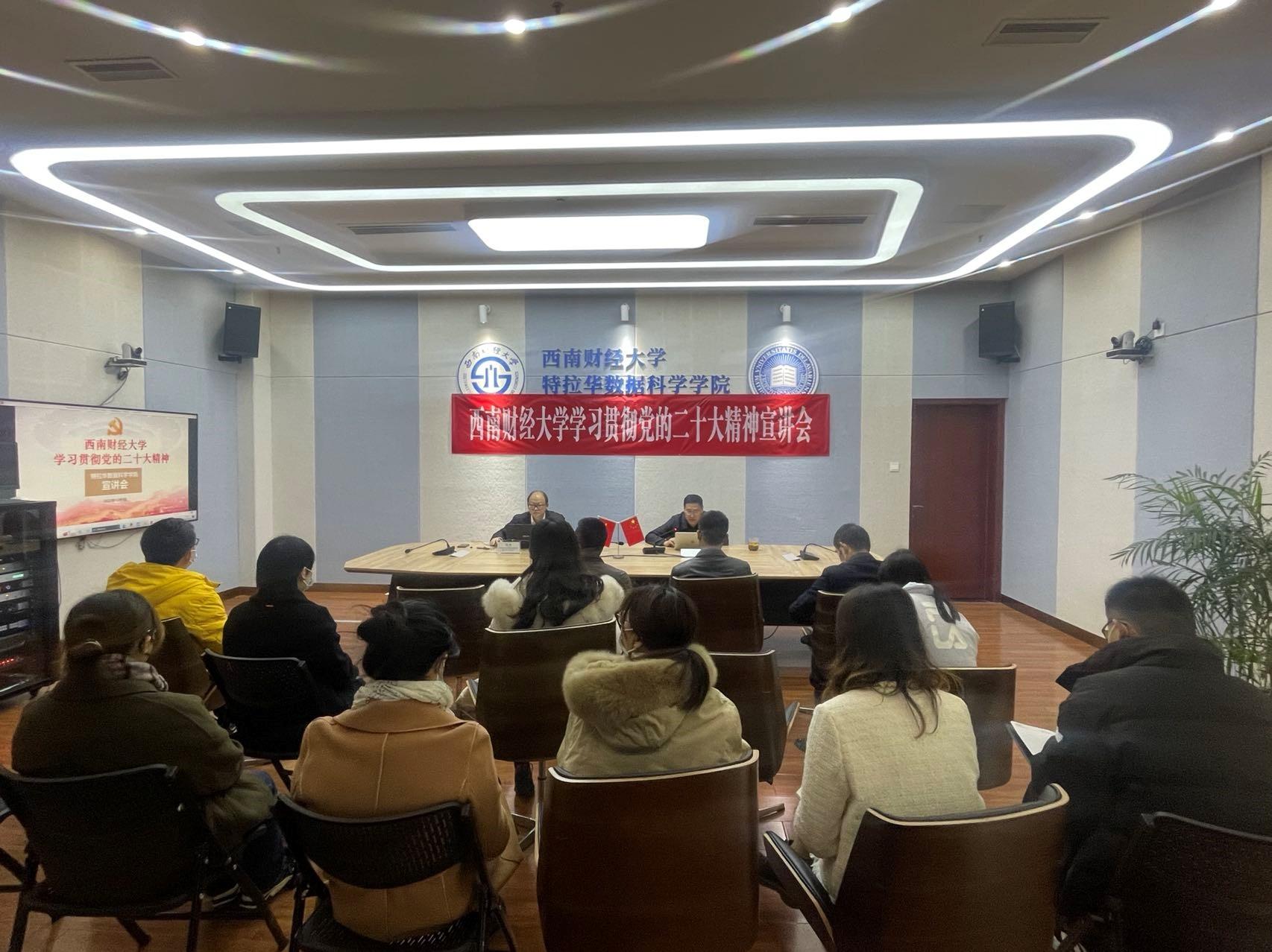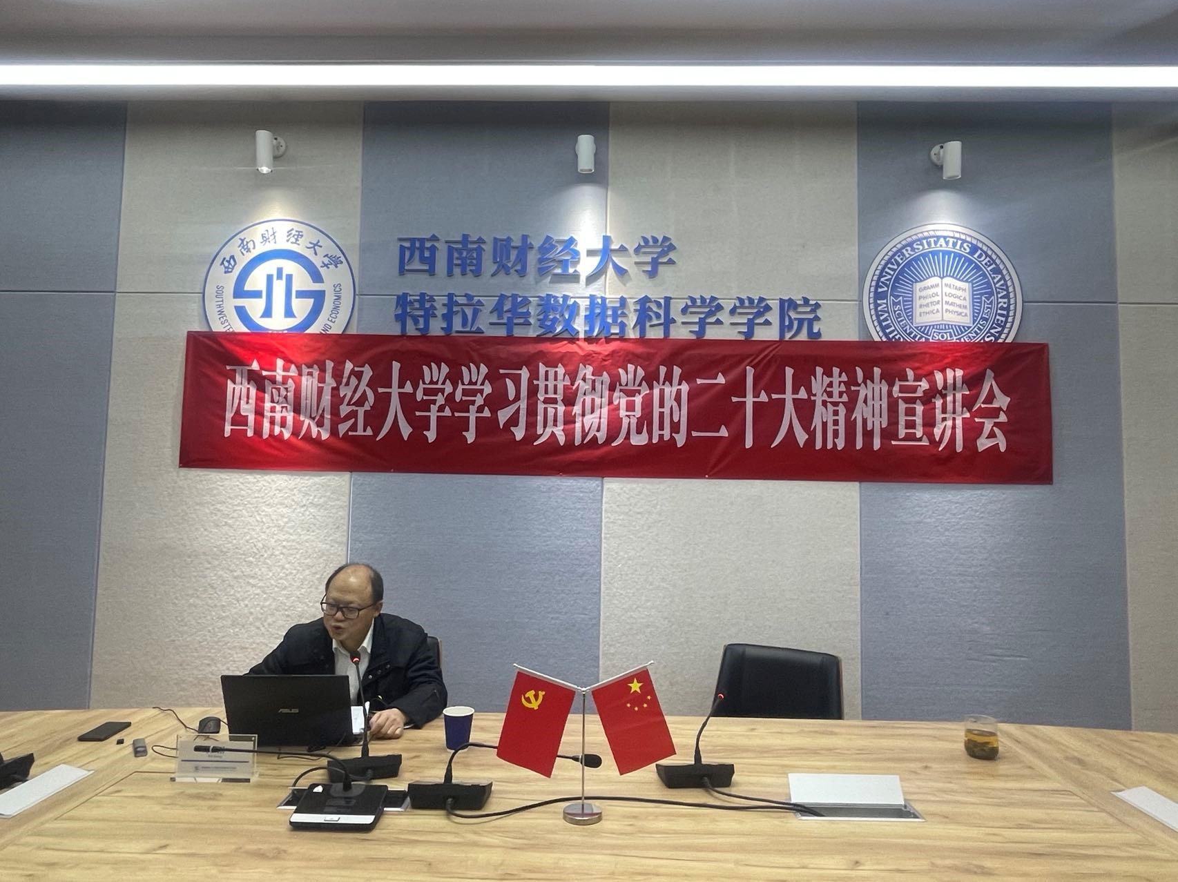 在格致楼G101视频会议室组织召开理论学习中心组(扩大)学习会,深入学习宣传贯彻党的二十大精神。学校机关与直属单位党委书记何刚做专题宣讲报告,学院领导班子、全体教职工参加了会议。