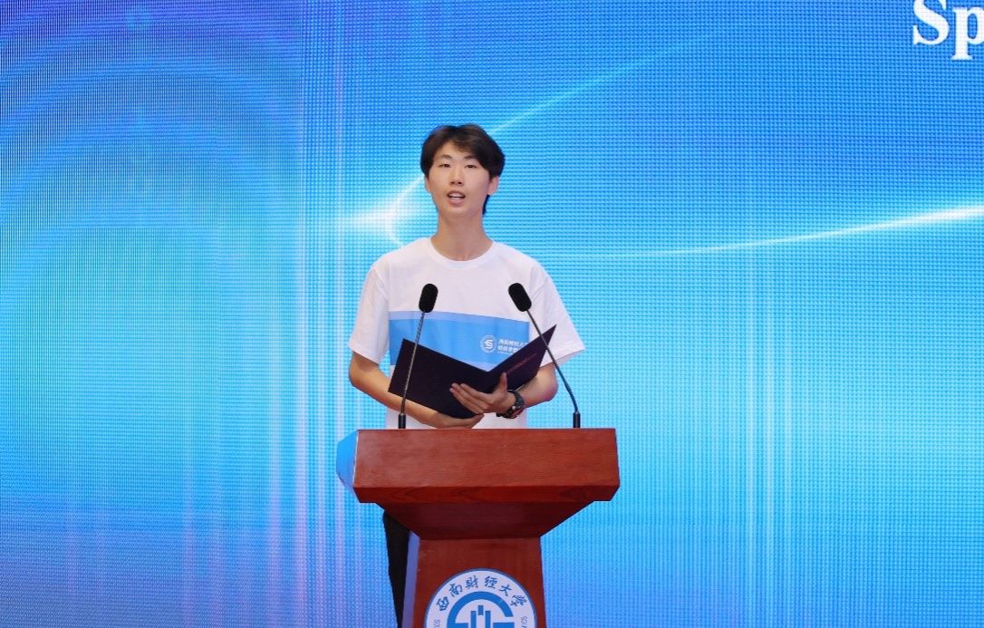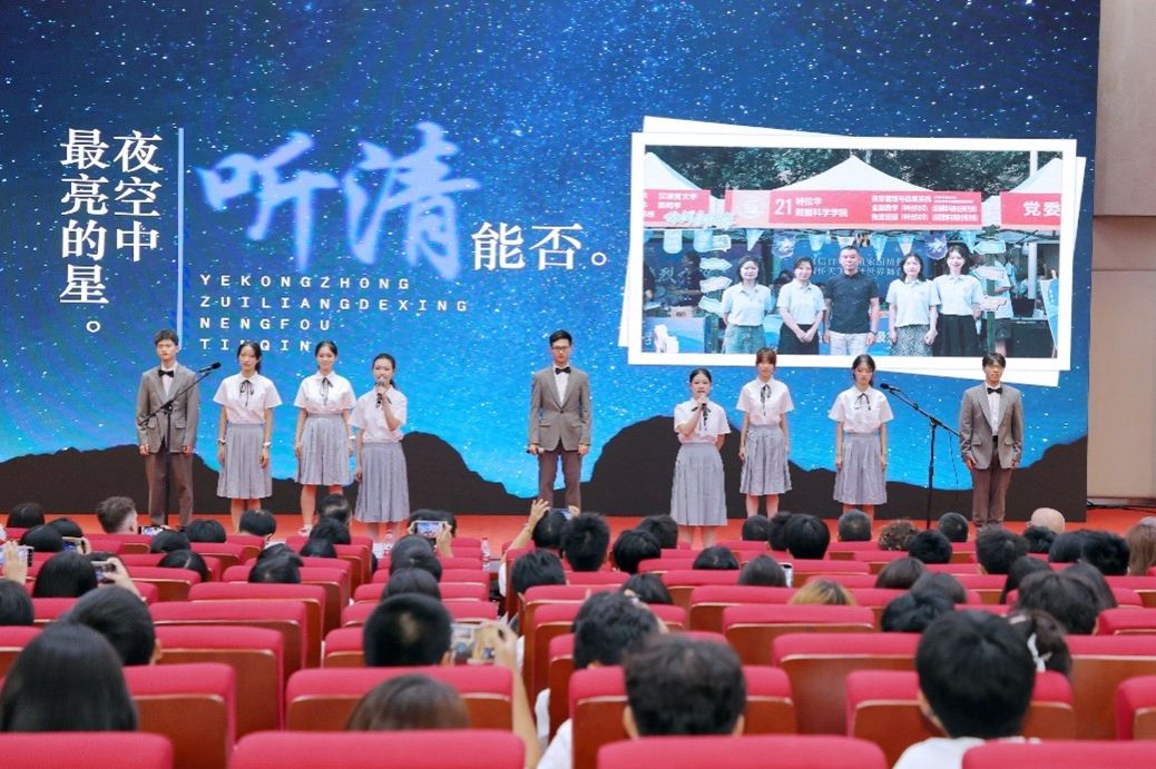 2022级学生李欣悦和2024级学生夏誉诚分别作为老生和新生代表发言。李欣悦从自身出发,分享大学生活和心得体会,鼓励学弟学妹们善用宝贵资源,把握奋斗时光,享受大学生活,尝试更多的可能,在不断的探索中坚持守正而行。夏誉诚表示在大学求知之路上要发挥主观能动性,格物致知、探索求真,作为新时代的青年,为学校百年华诞献礼,为祖国的繁荣富强贡献青春力量。
