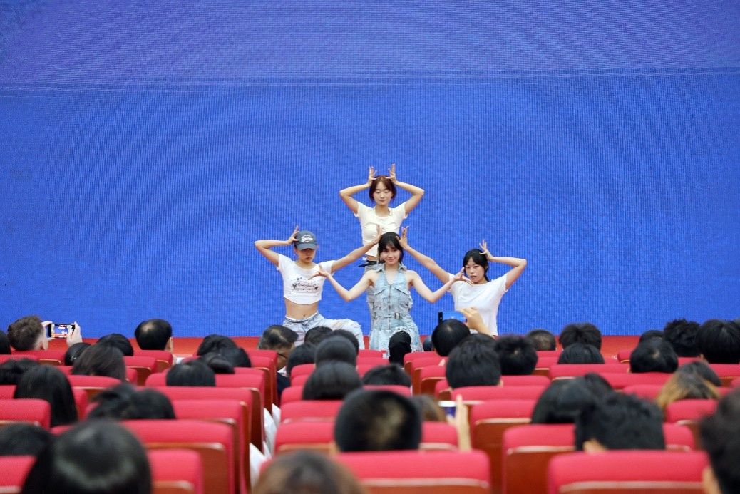 新生见面会上,同学们带来了舞蹈表演《WANNABE》、器乐表演《茉莉花》、合唱表演《夜空中最亮的星》,充分展现了探花视频