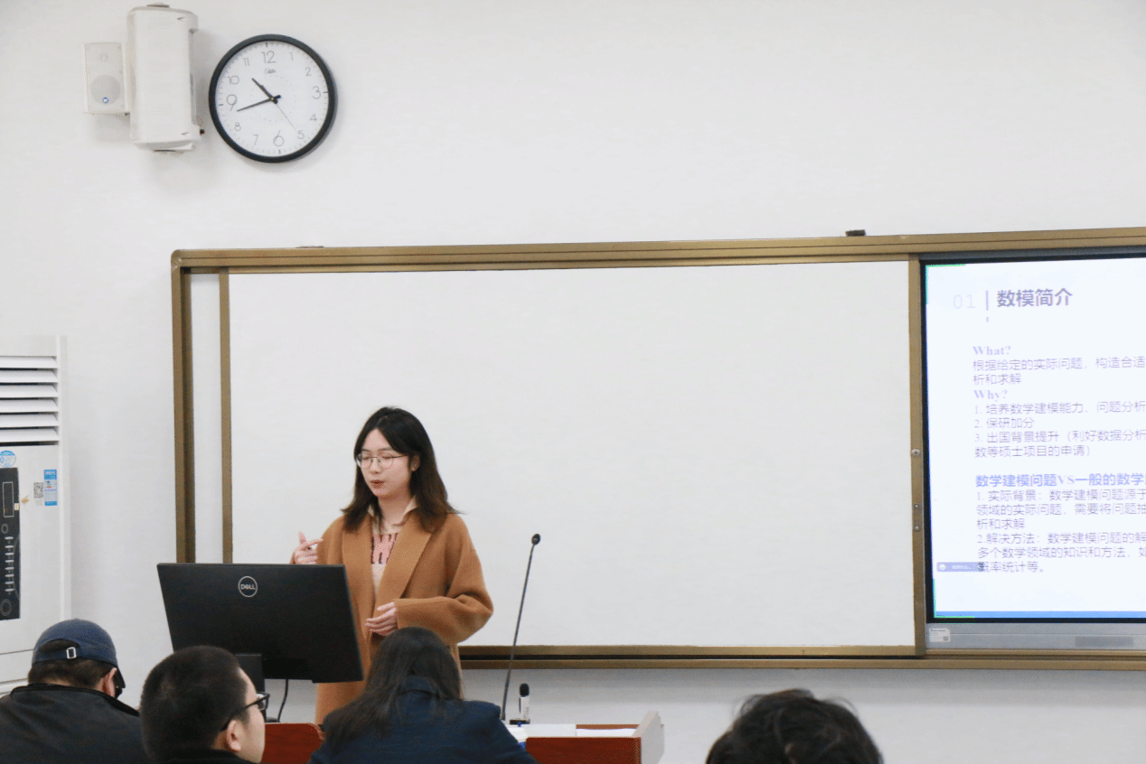 刘亚潇学姐分享了她在2023年全国大学生数学建模竞赛中的参赛经历与心路历程。刘亚潇同学以数模简介开头,明确了它和数学应用题的区别以及参加数模竞赛的作用与意义。接着,她分享了在前期准备阶段如何进行组队、如何寻找学习资料以及具体的备赛流程,并从应用模型角度,向同学们简单介绍了几大常见模型,以及应该如何具体应用。最后,她依据数模近年来的选题数据,就题目类型、如何选题、获奖概率等方面给出了一些建议。她告诉同学们:“人生没有白走的路,每一步都算数”,希望同学们能克服对未知的害怕,积极参与到数模比赛中去。
