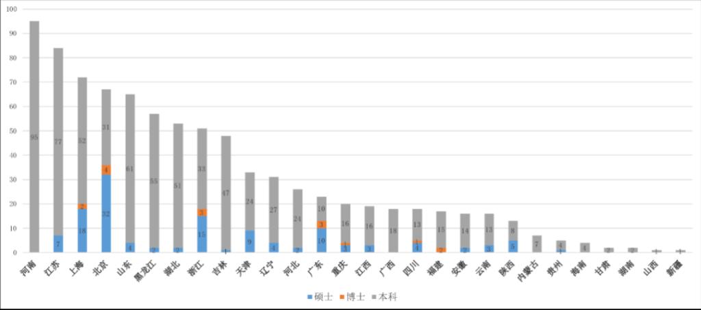 (各省市自治区本科及以上层次中外合作办学项目数量)