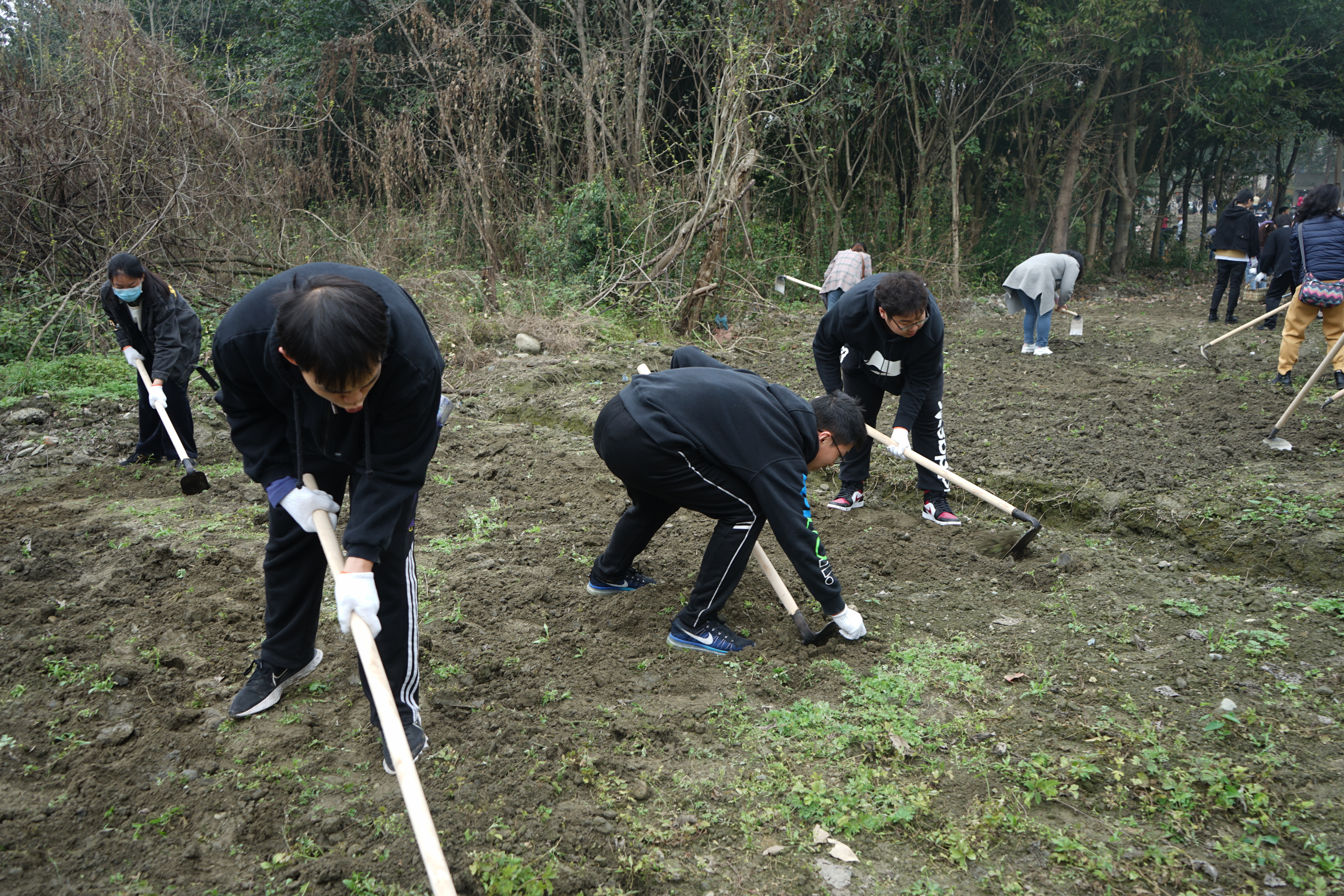 学生在“数据伊甸园”耕地里,齐心协力,分工合作,挖地,除草、松土。党委书记赵德武到探花视频