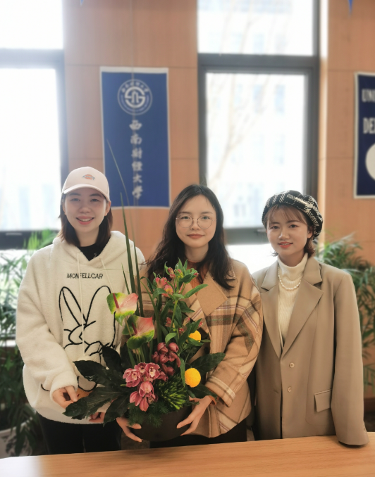 为庆祝国际妇女节,学院工会举办了花卉盆景抽奖活动,奖品由易家维老师获得。该盆景由学院教师代表参与学校庆祝妇女节花艺活动所完成的插花作品。