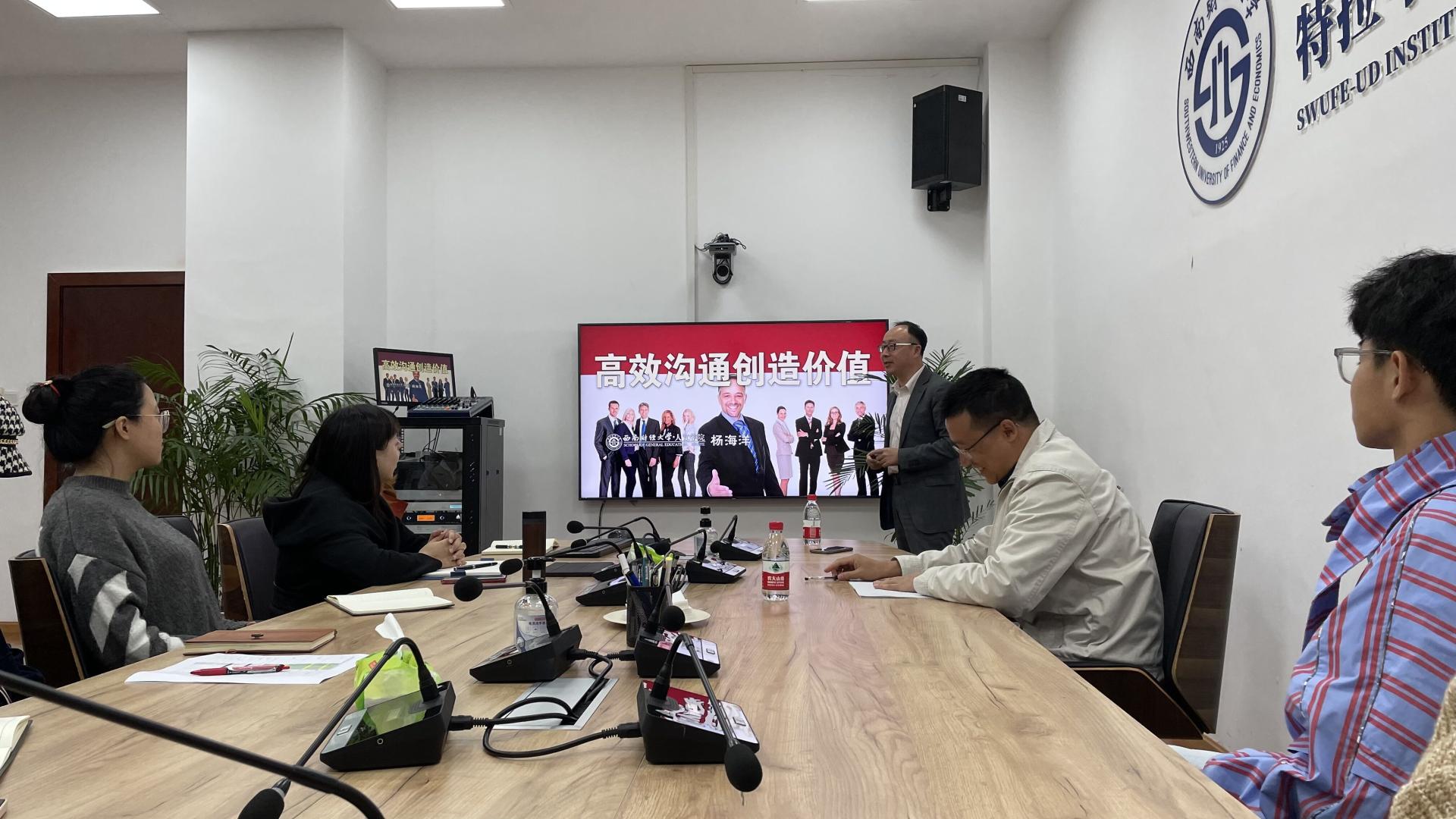 邀请学校社会研究院院长杨海洋院长开展专题培训讲座,杨石磊院长主持会议。本次培训以“高效的人际沟通”为主题,旨在加强沟通能力,全面提升系统沟通技能,提高自身的表达能力。
