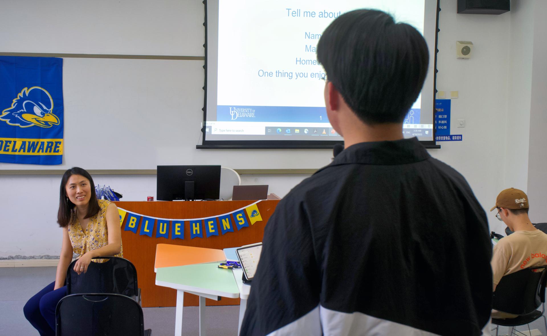 At the beginning of the event, Dora and students introduced themselves and shared about their hometowns and favorite things, quickly bringing the teachers and students closer together. Dora gave a brief introduction of University of Delaware and showed a video to give everyone a sense of the beautiful campus scenery. She then shared the rich resources and opportunities that UD provides for students, including internships, research, and career services, which filled the students with confidence for their future learning and development.